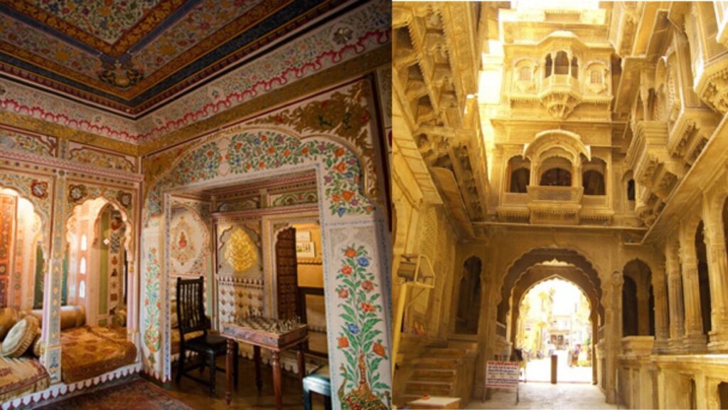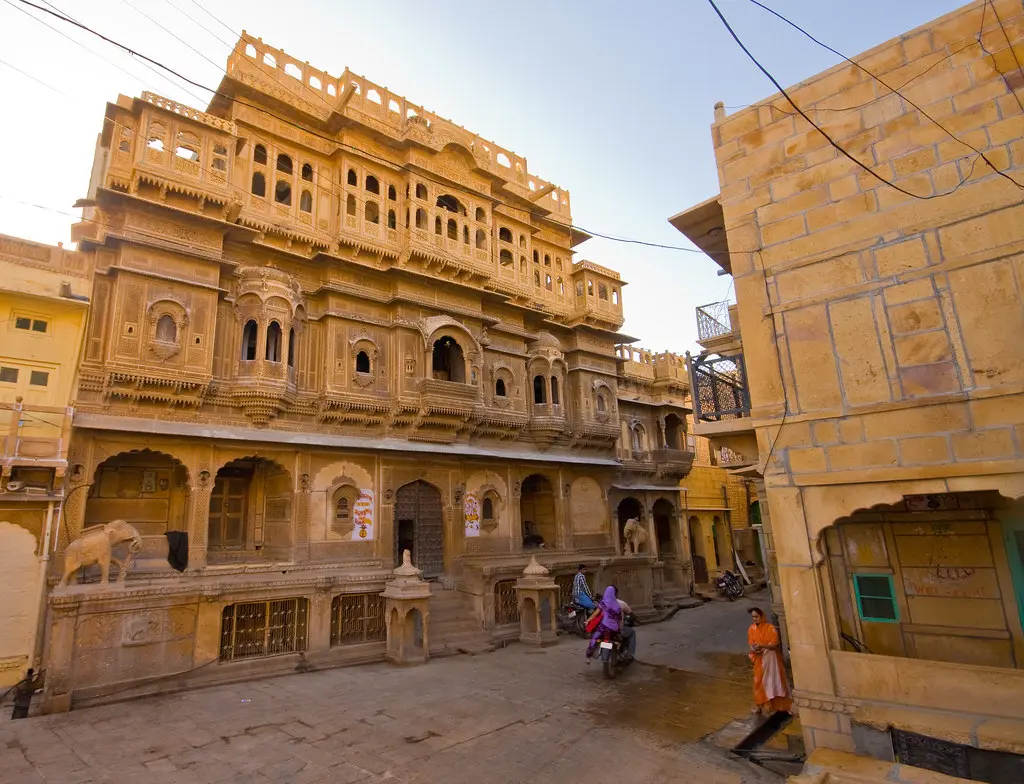 The most elaborate haveli complex in Jaisalmer, Patwon Ki Haveli is famous for its detailed stone carvings, balconies, and murals that showcase merchant wealth and craftsmanship.